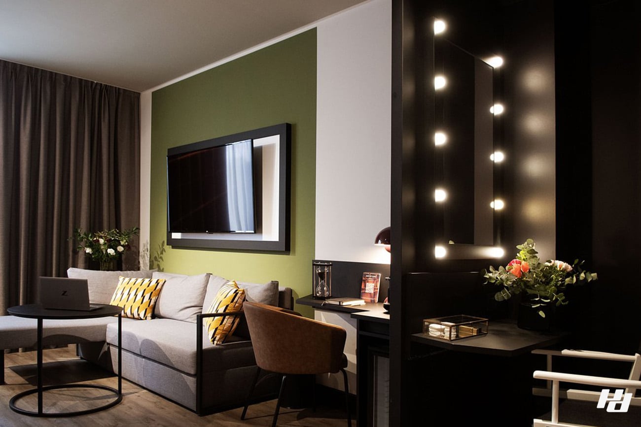 In un connubio di alta tecnologia e design che ben si sposa con lo stile dell’hotel, i pannelli di controllo all’interno delle camere sono stati realizzati nella linea di Microdevice Life&Design® Deep Black, mentre i pannelli esterni montano la linea Your Light Black con incisione personalizzata del numero di camera e un’elegante retroilluminazione blu.