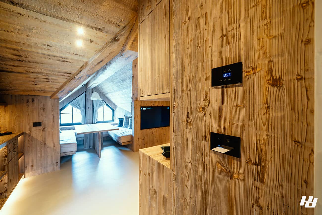 Mo.he ha trovato la risposta che cercava in Hi4-Supervisor®. Il sistema di automazione di Microdevice consente innanzitutto di controllare gli accessi alle camere, alle aree comuni e agli spazi riservati al personale della struttura: dal garage alla ski room, passando per la cantina e la palestra, tutto è controllato in modo automatico in base a impostazioni personalizzabili e facilmente modificabili in autonomia dalla proprietà. L’accesso a specifiche aree della struttura è controllato anche attraverso un lettore badge collocato in ascensore, che riconosce ogni utente garantendo massima sicurezza e controllo dei transiti.