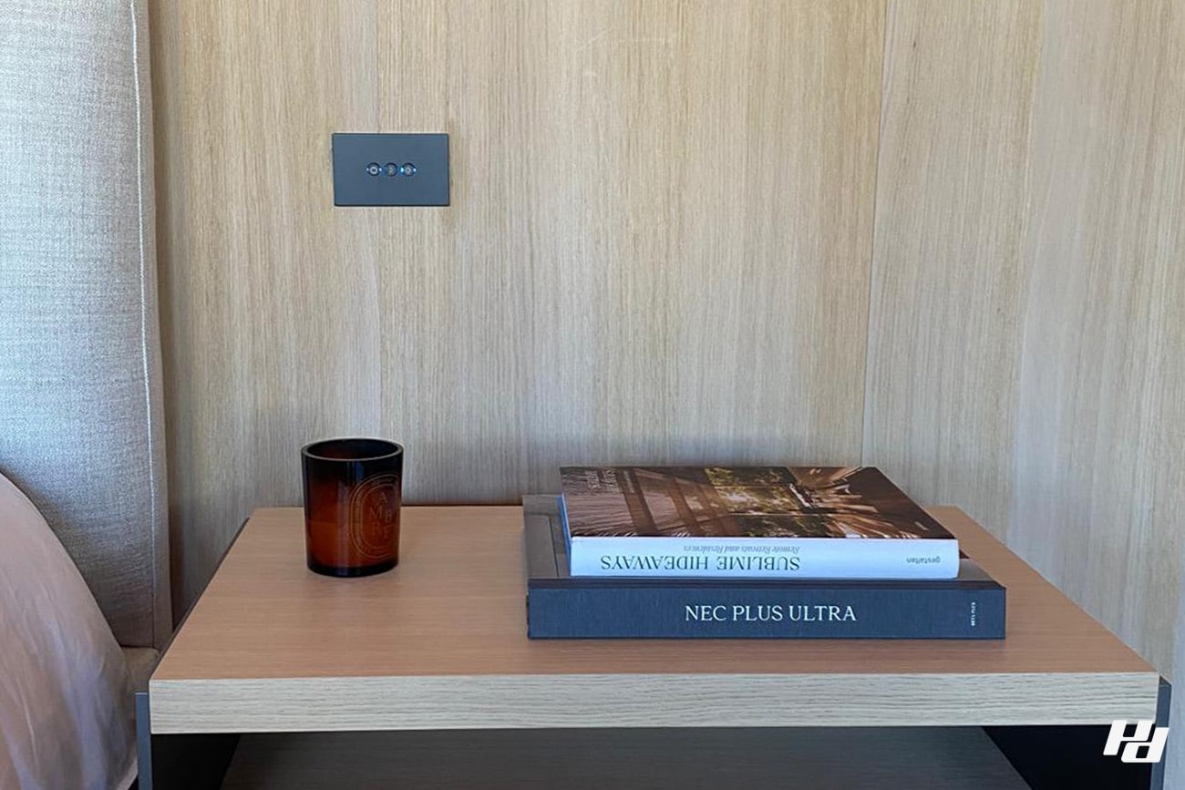 I pannelli per il comando manuale dei parametri sono stati realizzati nelle linee Life&Design® e Square con finitura Dark Bronze, in armonia con il carattere raffinato degli ambienti. Per garantire un connubio perfetto tra estetica e funzionalità, ogni pannello è stato sottoposto a un trattamento di tropicalizzazione che lo rende resistente all’alto tasso di salinità dell’ambiente marino.