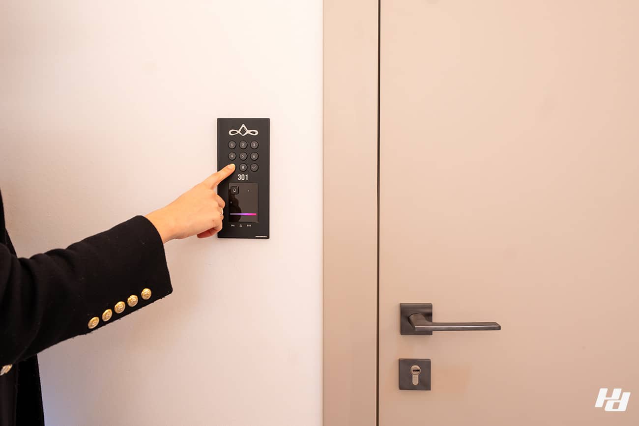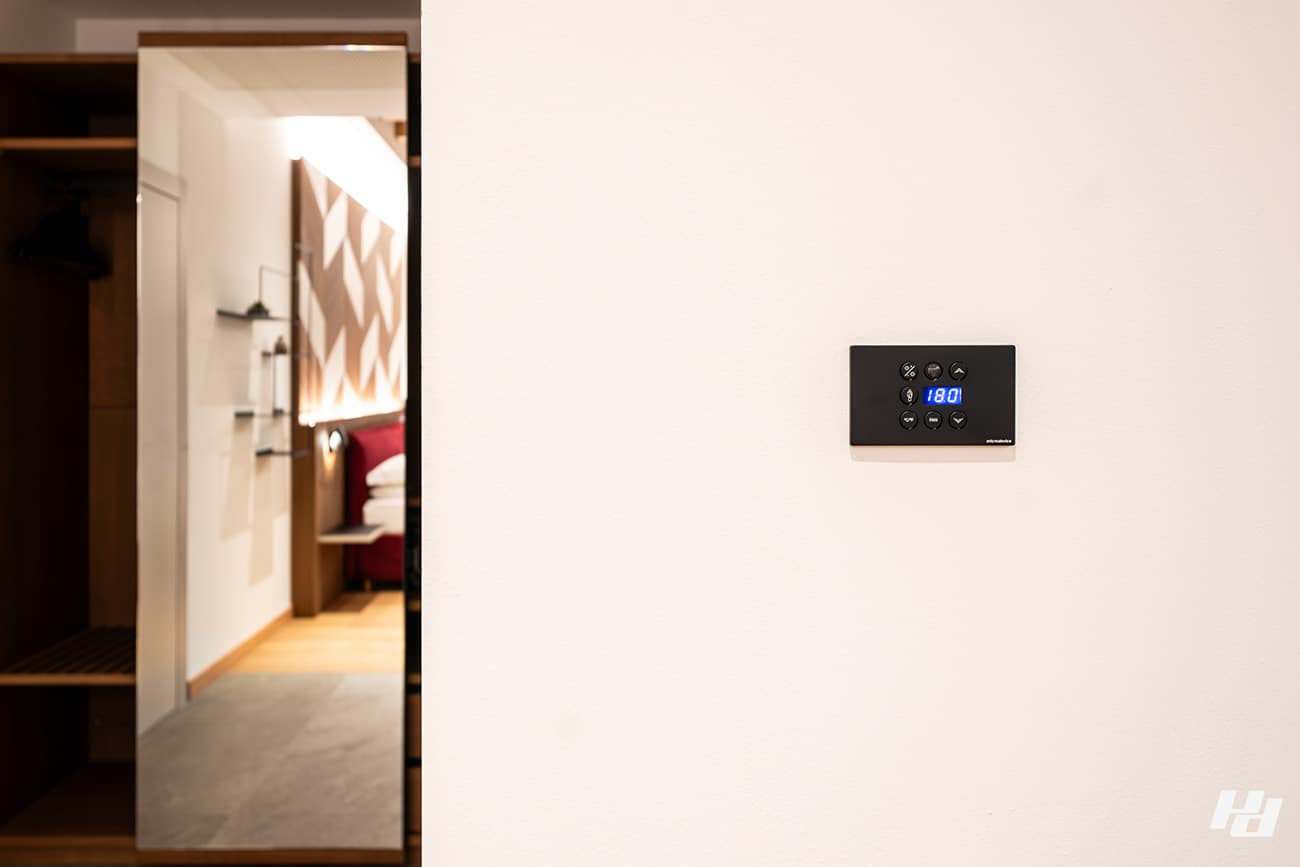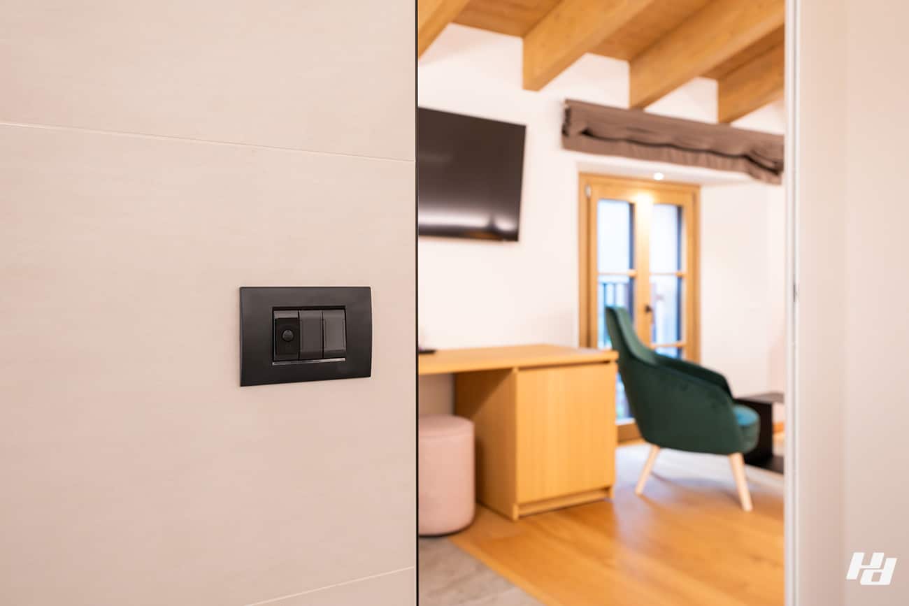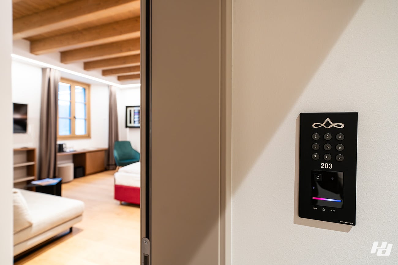 I tastierini di accesso sono stati realizzati nella linea Life&Design® Deep Black e sono personalizzati con il logo dell’hotel e icone custom.